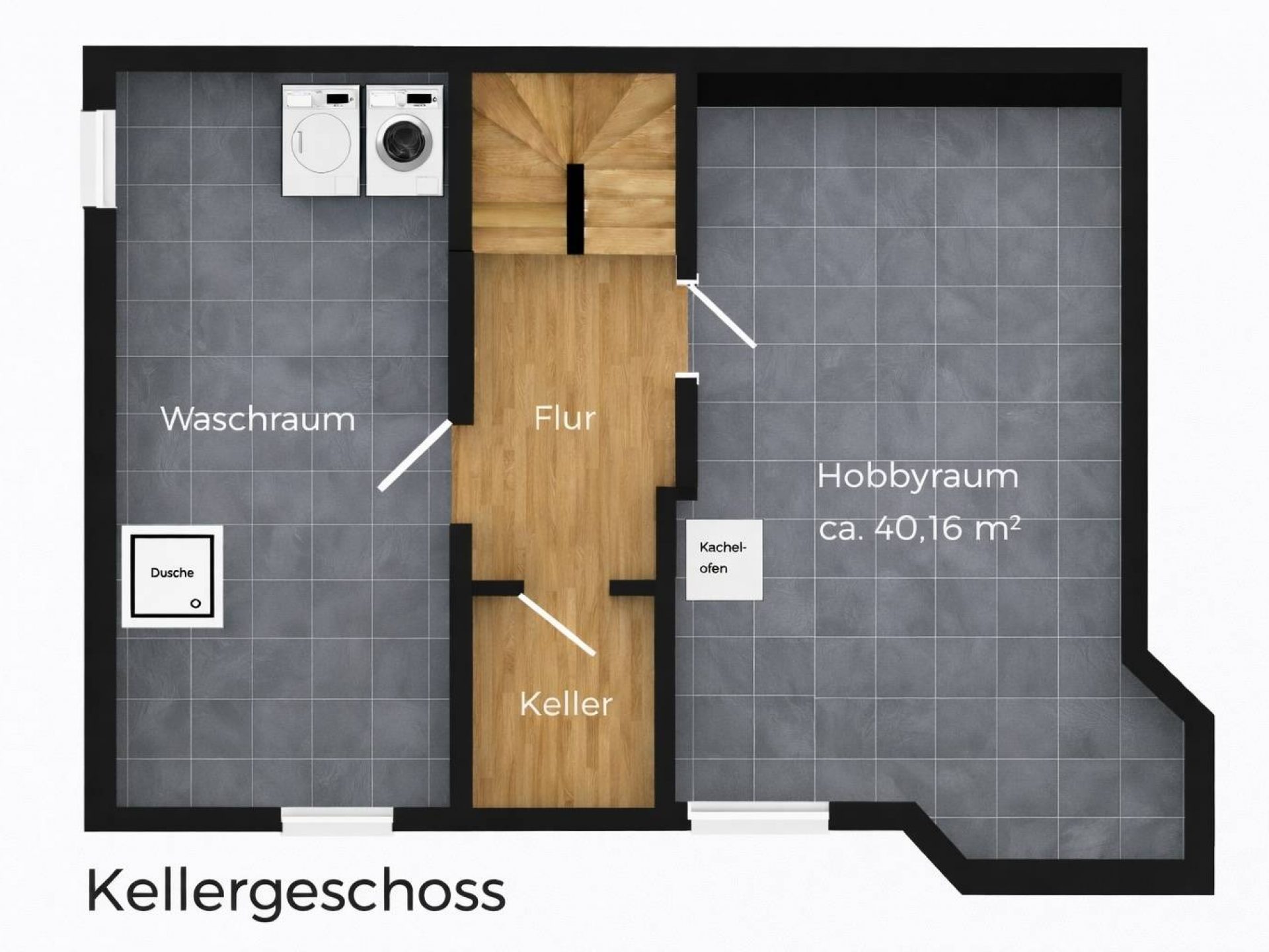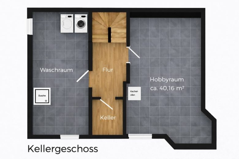 Im Untergeschoss erwartet Sie neben einem großzügigen Waschraum – mit Option zur Installation einer Sauna – ein echtes Highlight: der große, helle Souterrain-Hobbyraum mit Tageslichtfenstern (der Gartenbereich vor dem Fenster wurde abgeböscht) . In diesem Raum befindet sich zudem ein wunderschöner Jugendstil-Kachelofen, der besonders an kalten Tagen für eine behagliche, angenehme Wärme sorgt. Ob als Jugendbereich, Atelier, Gästezimmer oder zusätzlicher Schlafraum – die Nutzungsmöglichkeiten sind ebenso vielseitig wie attraktiv. Ergänzend steht ein weiterer Kellerraum als praktische Vorrats- und Lagerfläche selbstverständlich zur Verfügung.