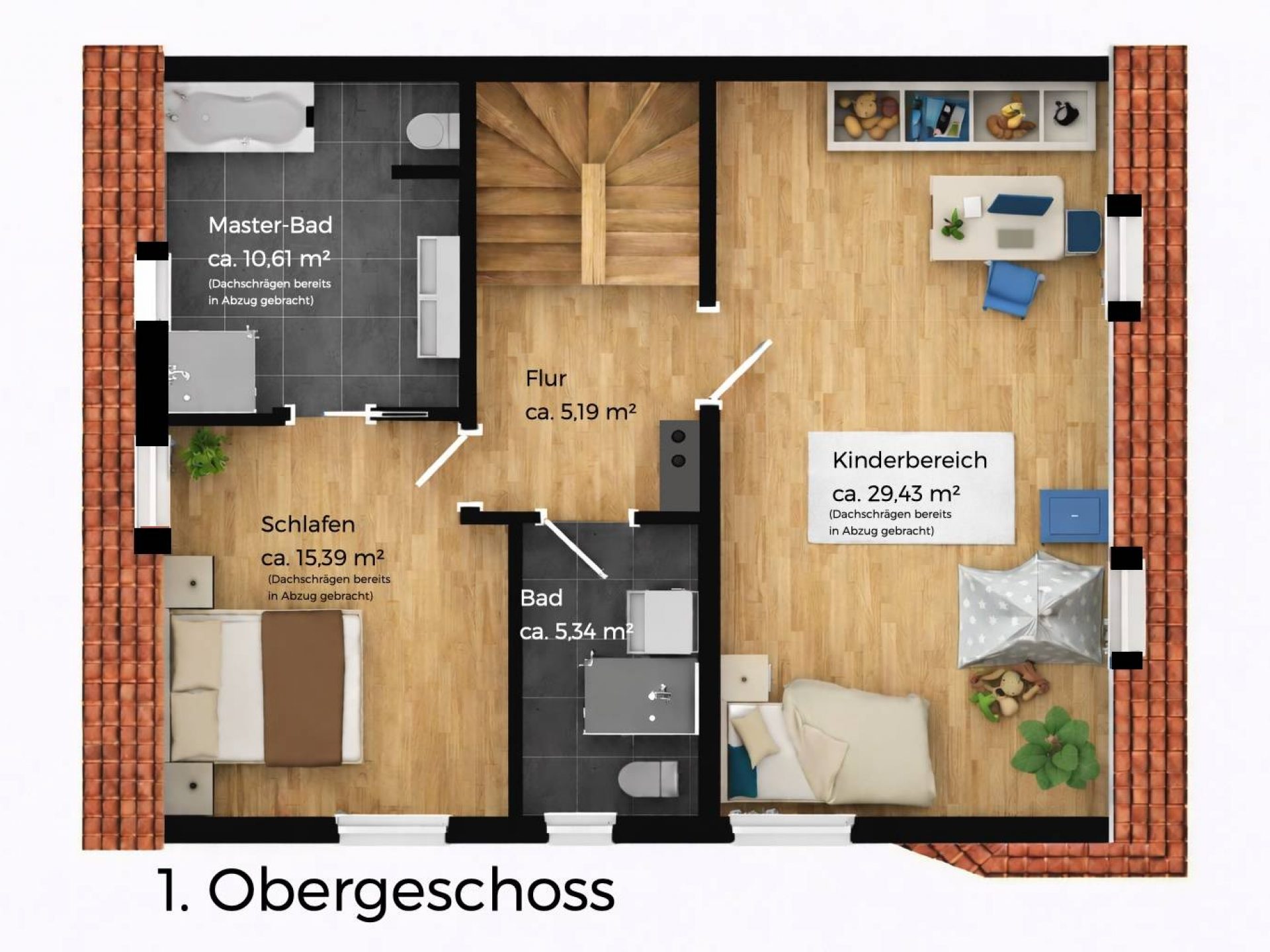 Dachgeschoss mit zusätzlichem Bad und Gäste-WC