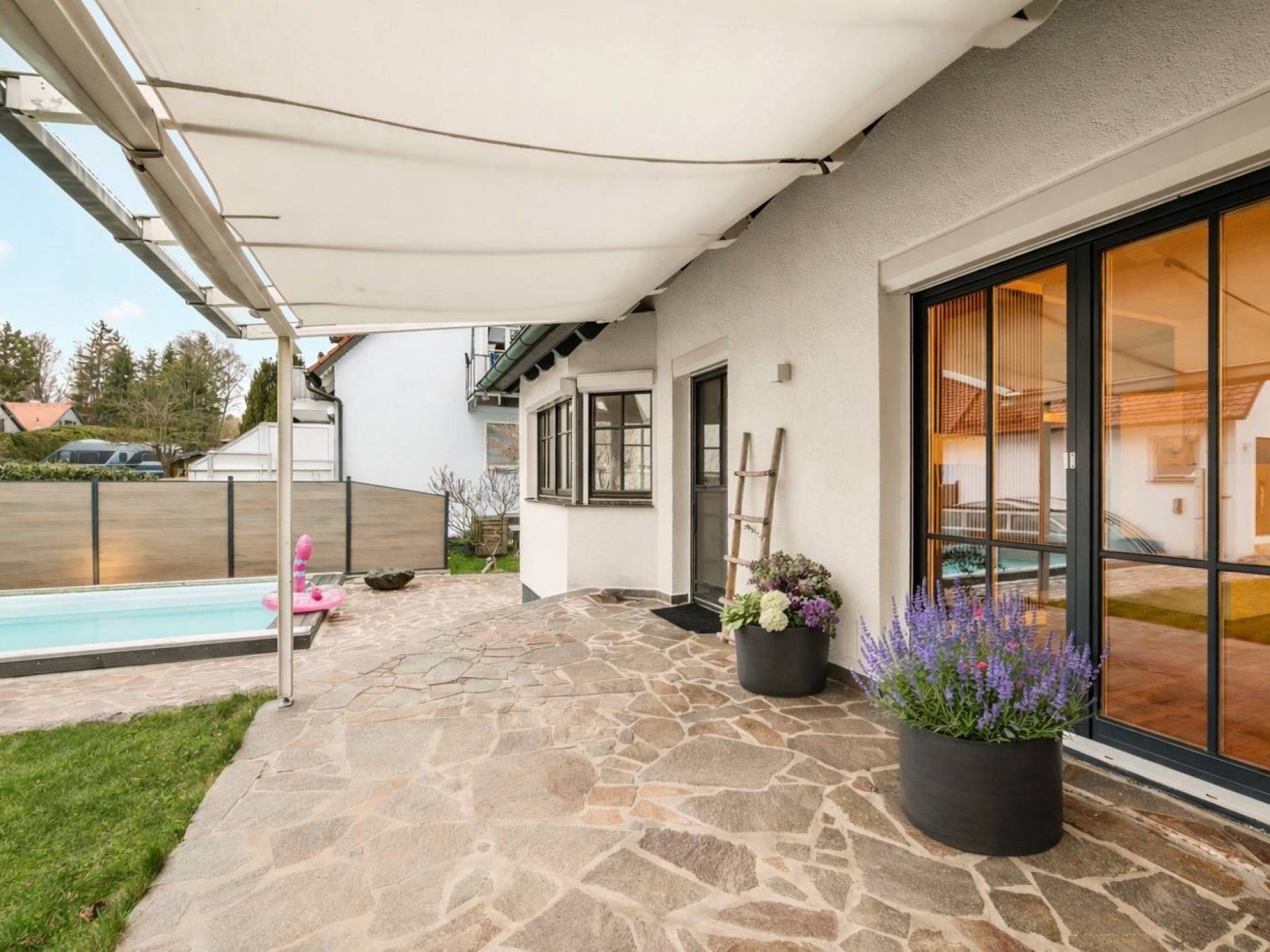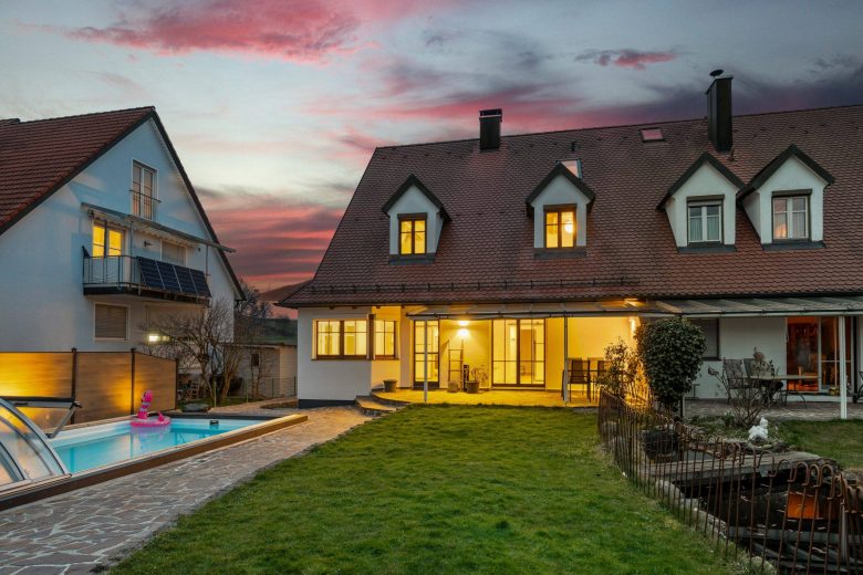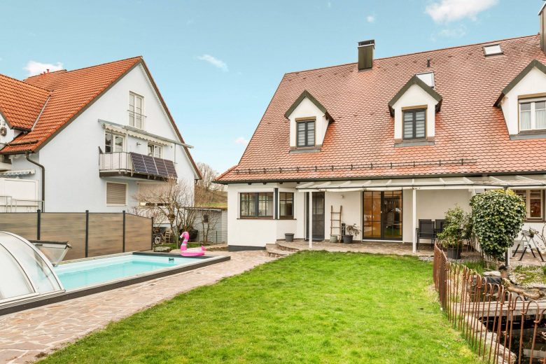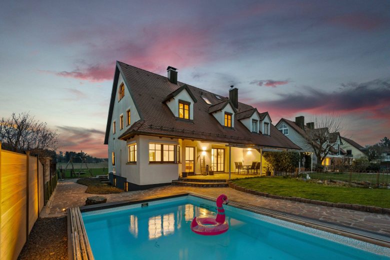 Objekt: Stilvoll renovierte XL-Doppelhaushälfte mit Doppelgarage und Pool am Feldrand von Günding