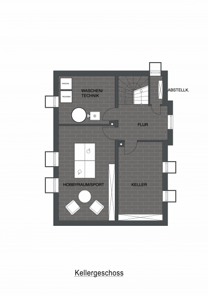 Hauswirtschaftsraum für Waschmaschine und Trockner sowie Haustechnik