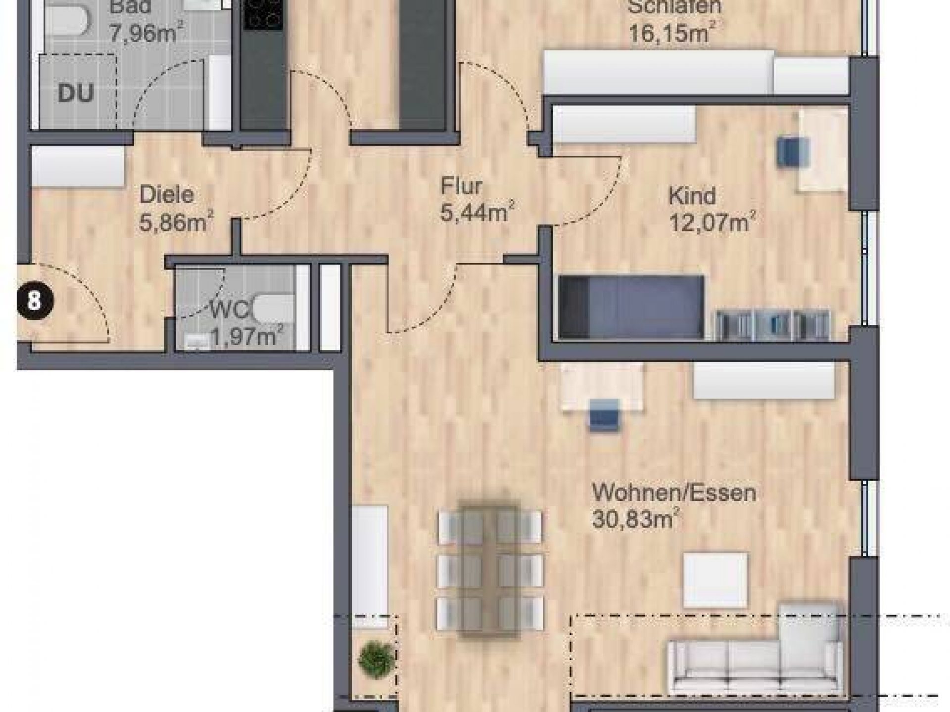 -moderne Architektur, eine durchdachte Raumgestaltung und eine erstklassige Ausstattung. Ob sonnige Stunden auf dem Balkon, Kochen in der großen Wohnküche und entspannen im offenen Wohnbereich oder Rückzugsmöglichkeiten im gemütlichen Schlafbereich– hier wohnen Sie mit höchstem Komfort und besonderem Ambiente.